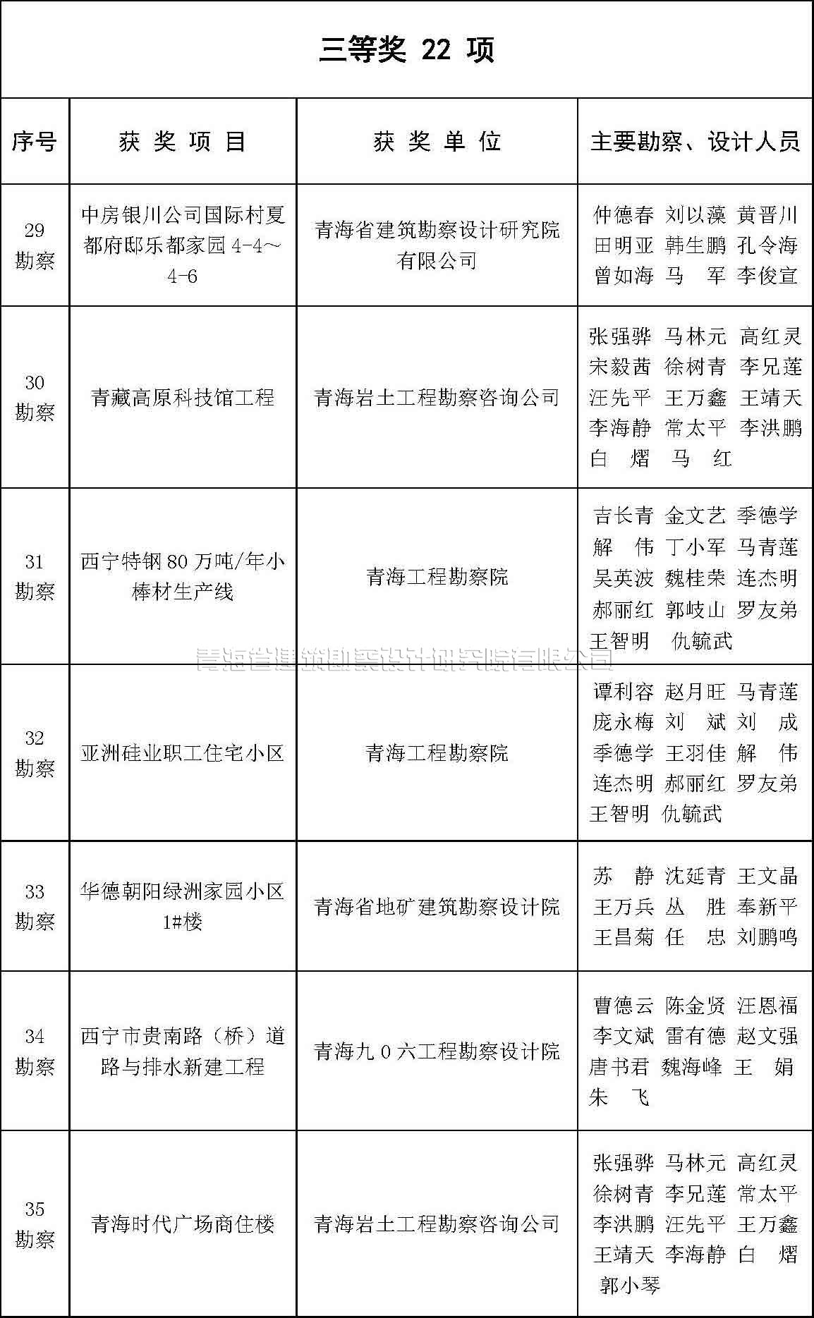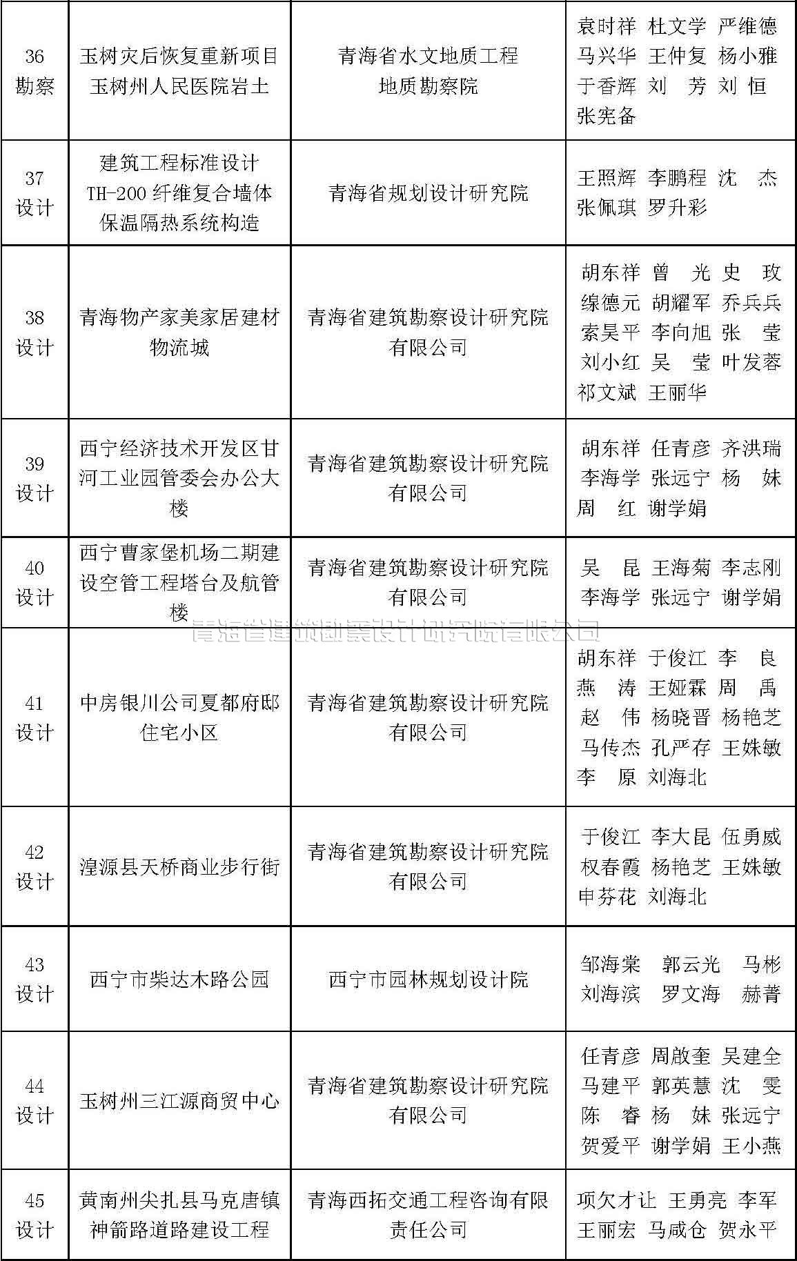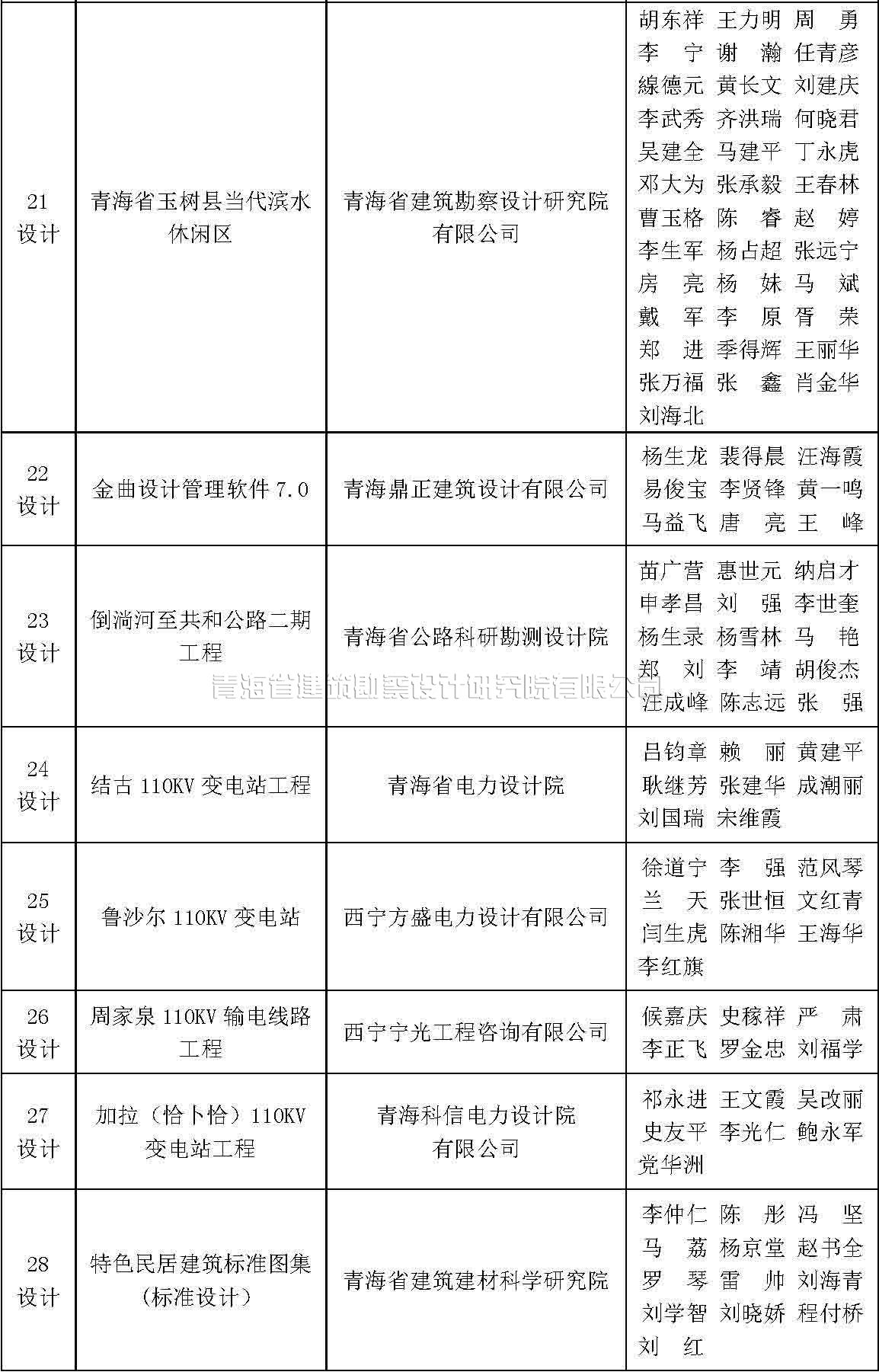 根據(jù)《青海省優(yōu)秀工程勘察設(shè)計(jì)獎評選辦法》(青建設(shè)[2011]534號,以下簡稱《評選辦法》)的規(guī)定,及中國勘察設(shè)計(jì)協(xié)會《關(guān)于評選2015年度全國優(yōu)秀工程勘察設(shè)計(jì)行業(yè)獎的通知》,我協(xié)會組織對2015年度青海省優(yōu)秀工程勘察設(shè)計(jì)獎進(jìn)行了評選。評選結(jié)果于7月15日在協(xié)會QQ群中進(jìn)行了公示,現(xiàn)予以公布。