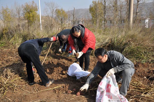 大堃農業生態園位于湟中縣多巴鎮一山坳里,土豆是這里的主要經濟作物,屬旱地農作物,病蟲害少,土壤越干旱,產量越高。此時已是11月初,寒意襲秋,霜凍不遠。土豆雖然儲存時間長,但是,如果在霜凍后不及時收挖,會造成土豆爛壞率成倍增加。因人手有限,園區種植的近40畝土豆急需人力挖收,于是,公司黨委就把義務為園區挖土豆作為黨員實踐活動的載體。